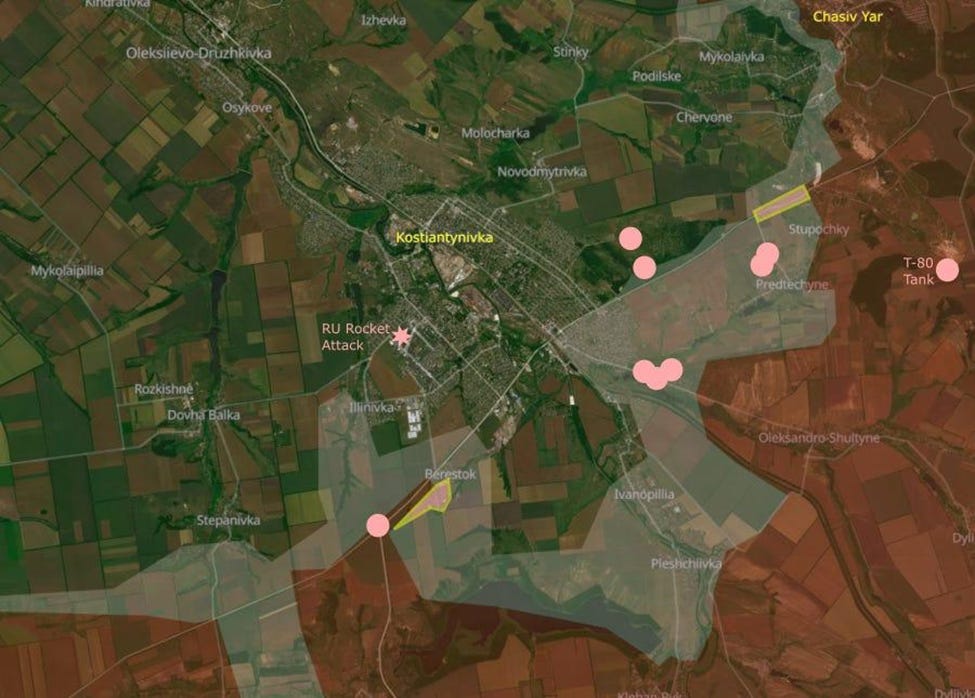 Twenty months ago Ukraine conducted a unit rotation on this axis and Russia took advantage and began a slow advance towards Kostiantynivka - which, back then, was 21 km away. Russia is continuing that slow advance.