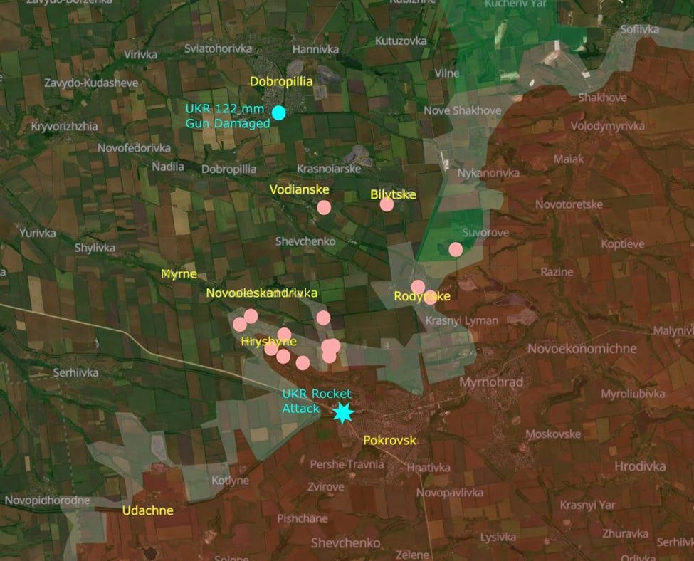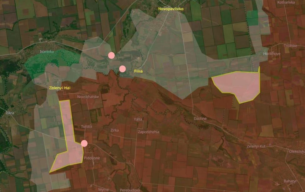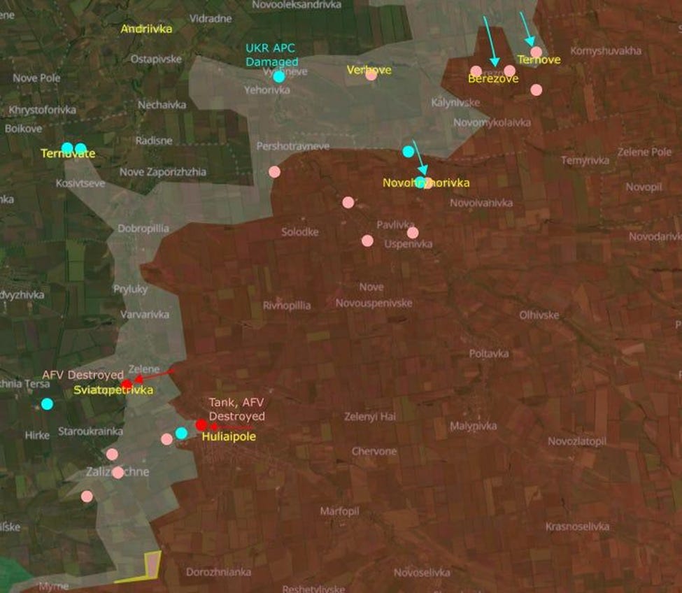 The sector through Rodynske is porous, but infiltrators are still tracked down 7 km away and eliminated. One reason why Russia is pushing so hard through Hryshyne to Novooleksandrivka and Myrne is because the trees and buildings provide cover on this route.