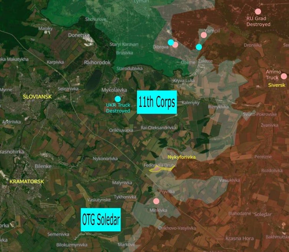 The Russian advance was slow and focused on the organizational boundary between XI Corps and the Operational Tactical Group Soledar.