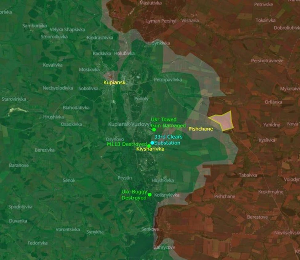 The short and long version of Ukraine’s 33rd Brigade clearing the substation on the eastern side of Kivsharivka. Various Russian targets are attacked behind Russian lines southeast of Kupiansk.
