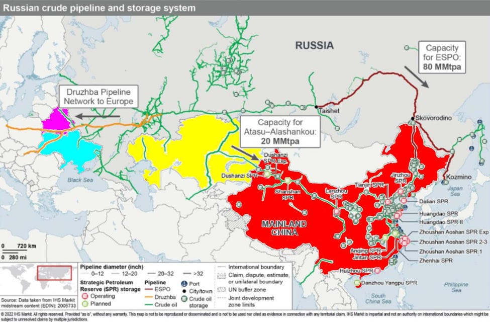 Russia is offering China discounts of $12/barrel. Chinese state refineries stopped accepting Russian oil due to sanctions. Smaller independent refineries still buy Russian oil.