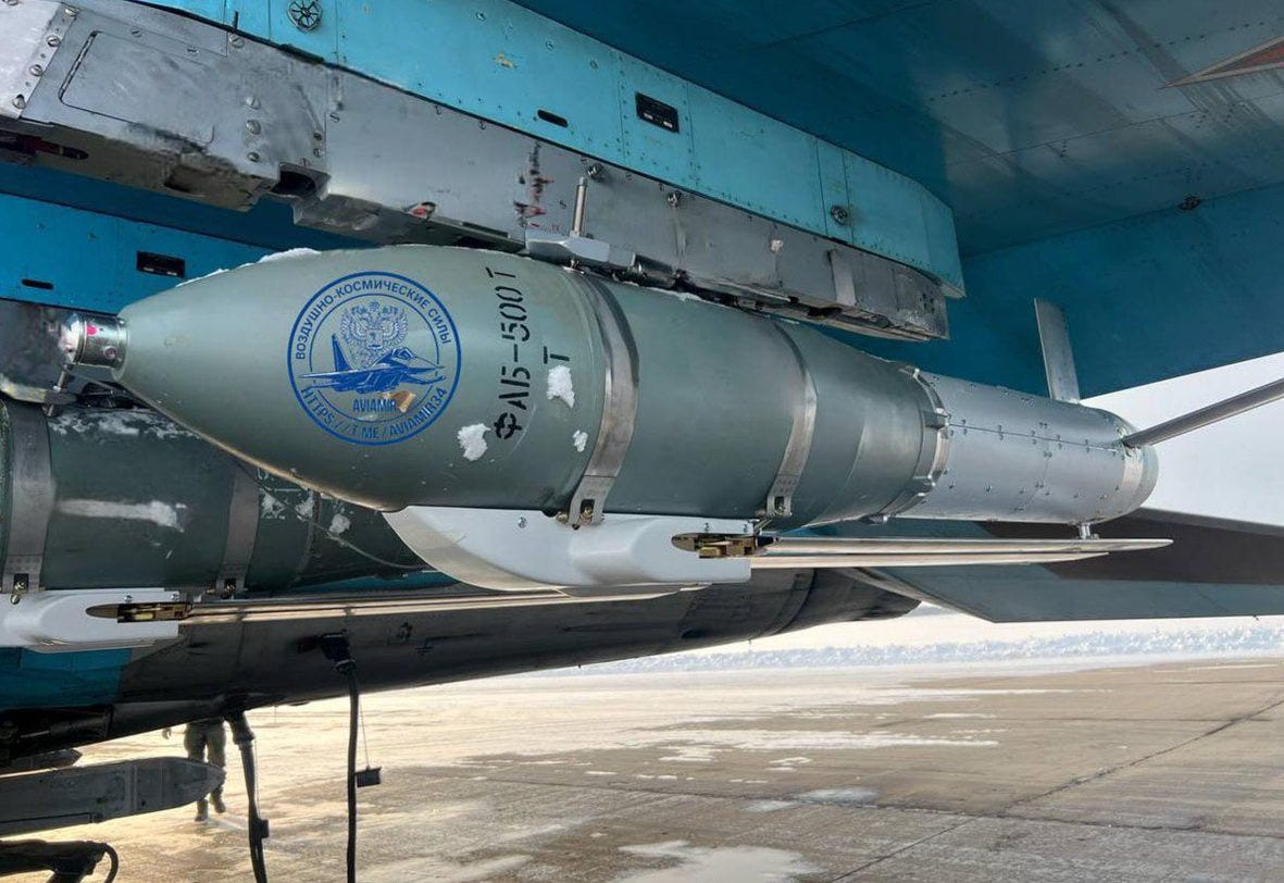 EDIT: ‘just in’ (the photo is some 2-3 days old, though), is an image of the latest Russian glide bomb. The UMPB-5 is actually rocket powered and has a claimed range of 160km. The image is showing two as installed on a Su-34 of the VKS.