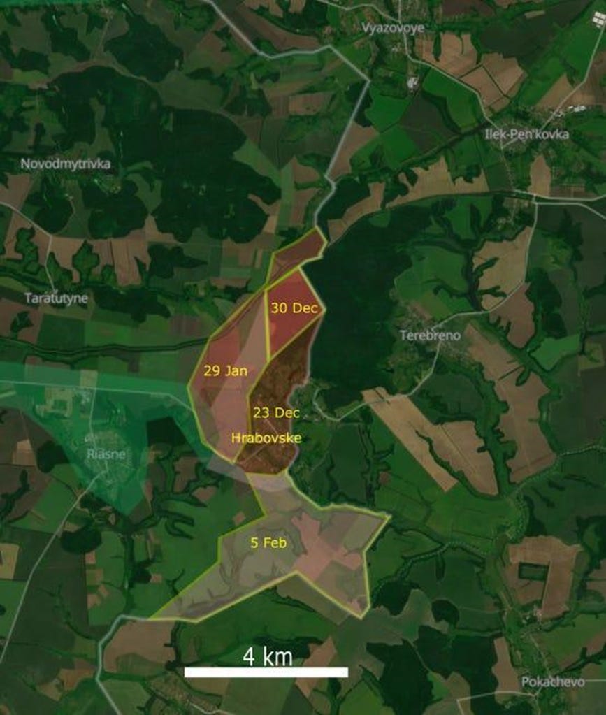 The (much-announced, at least in Russia) biiiiiiiiiig offensive didn’t really take place. Indeed, there was no movement north of Sumy. As mentioned a week ago, though: there has been a slowly increasing Russian incursion 45 km southeast of Sumy.